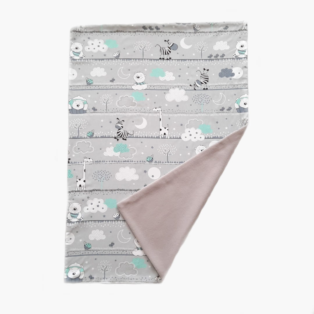 Kocyk ma 2 warstwy. Wierzchnia warstwa to miły w dotyku i ciepły polar (poliester), spód to bawełna drukowana we wzory jak na załączonych zdjęciach. Od A do Z wykonany jest w naszej pracowni: projektujemy, kroimy, haftujemy, zszywamy i wysyłamy sami.