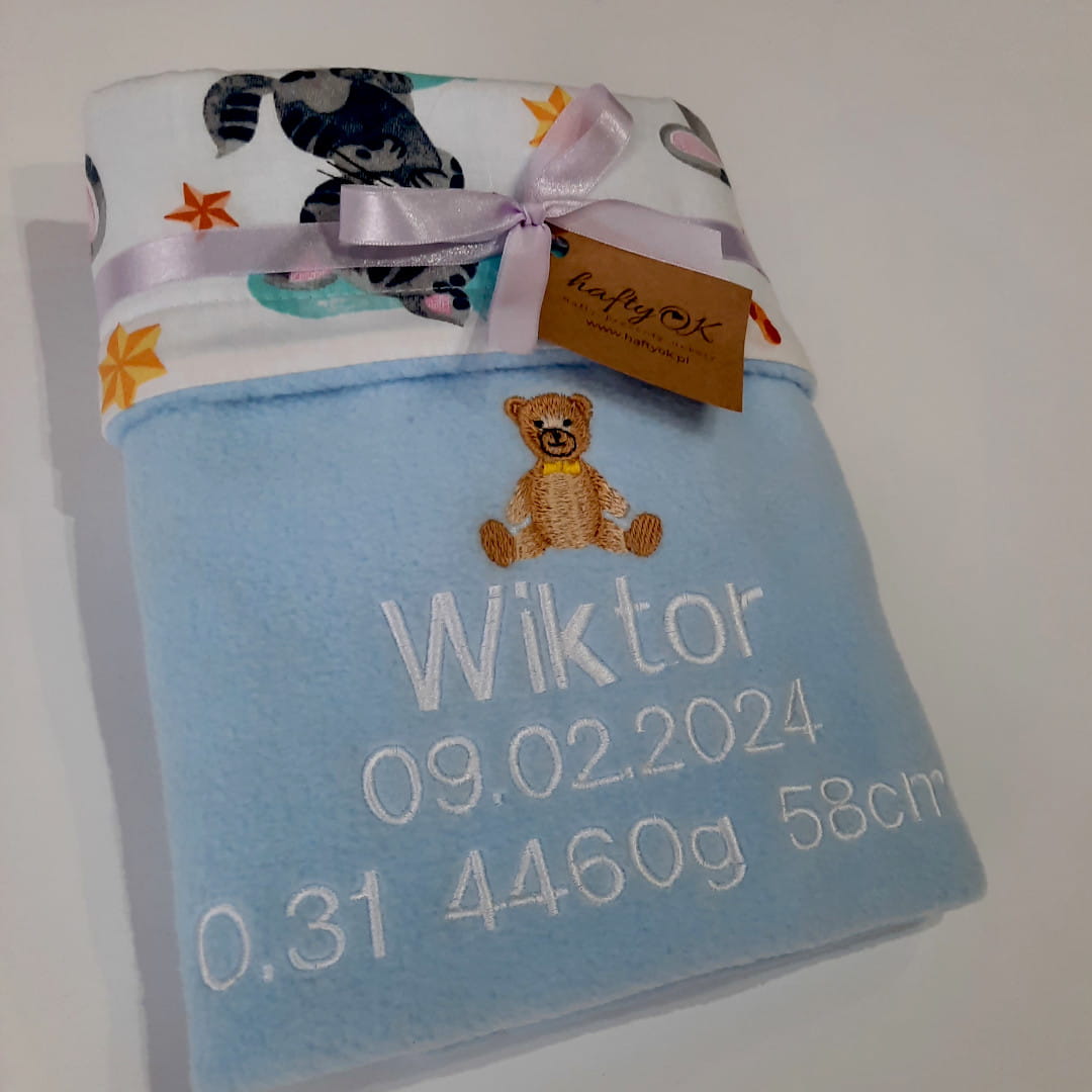 Personalizowany kocyk dla dziecka z metryczką na prezent