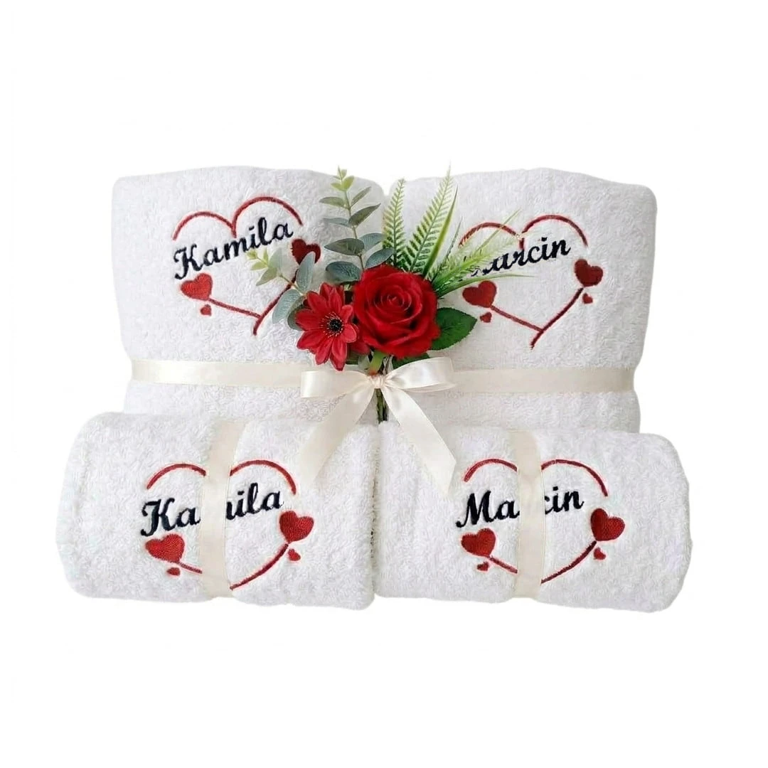 komplet 4 ręczników z personalizacją i haftem 5 serc