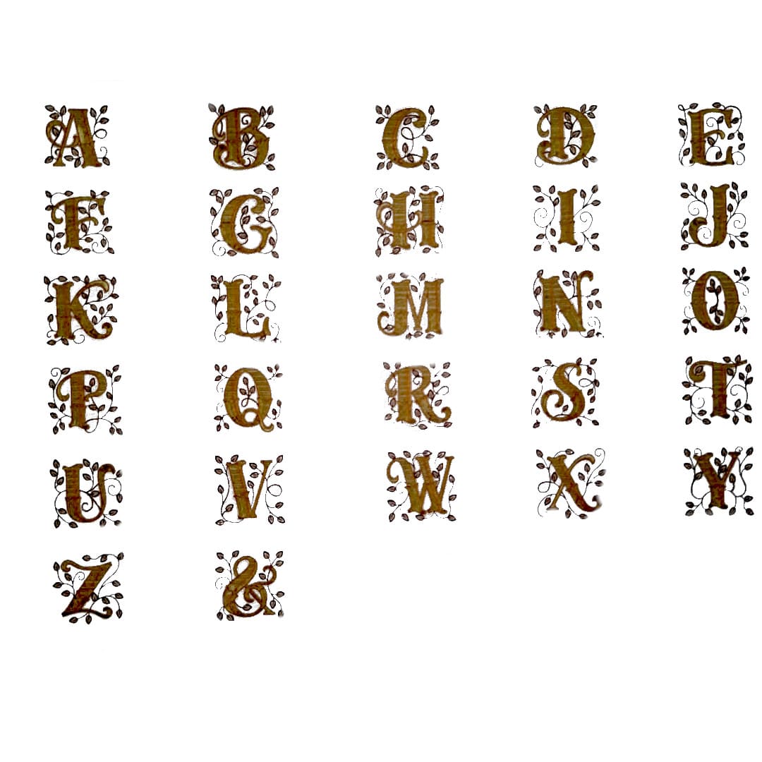 Na poniższym zdjęciu znajdują się dekoracyjne litery, które będą wyhaftowane na ręczniku. Jest to pierwsza litera imienia. Kolor litery będzie w kolorze imienia/dedykacji którą wybierzesz z listy.